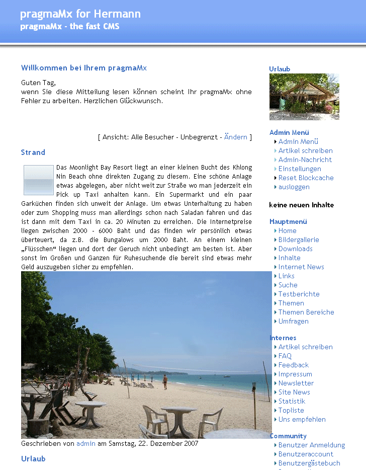 PragmaMx CMS Frontansicht